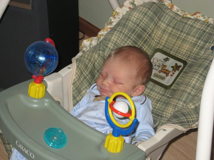 Since Austin does not like to sleep in his crib during the day, night no problem, we have had to come up with some creative ways to get him to sleep. Sometimes he ends up in the wierdest, yet cutest positions!